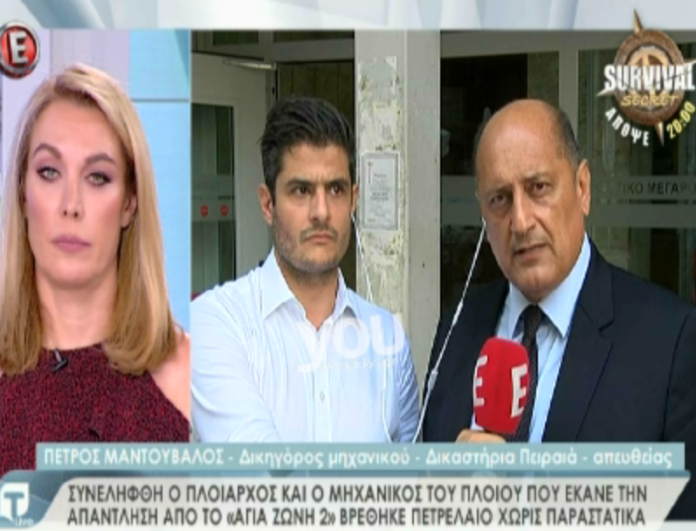 Η Τατιάνα Στεφανίδου σήμερα το απόγευμα, έβγαλε στον αέρα της εκπομπής τον δικηγόρο Πέτρο Μαντούβαλο ο οποίος είναι συνήγορος υπεράσπισης του Μηχανικού του πλοίου που πιάστηκε με πετρέλαιο χωρίς παραστατικά στις δεξαμενές έρματος που κανονικά γεμίζουν με θαλασσινό νερό!