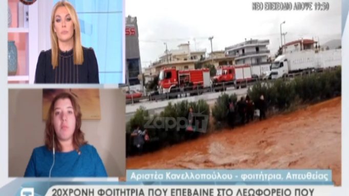 Στην εκπομπή Tatiana Live μίλησε η Αριστέα Κανελλοπούλου, η 20χρονη φοιτήτρια που επέβαινε στο λεωφορείο, το οποίο παρασύρθηκε από τα λασπόνερα.