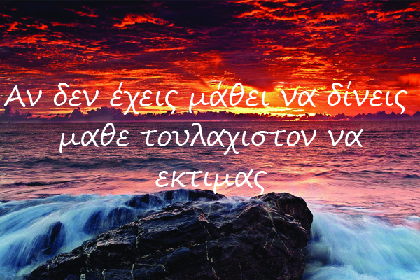 Ότι σου έδωσα ήταν προϊόν αγάπης, όχι ανταλλαγής. Δεν περίμενα από σένα την ανταπόδοση παρά μόνο την εκτίμηση. Ότι σου έδωσα ήταν δώρο και όχι δανεικό, αλλά σε παρακαλώ, αν δεν έχεις μάθει να δίνεις, μάθε τουλάχιστον να εκτιμάς.