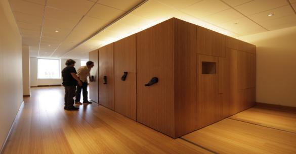 Έτσι η εταιρεία σχεδιασμού «Taylor and Miller» βρήκαν την λύση για να εξοικονομήσουν χώρο. Δημιούργησαν έναν «κινούμενο» χώρο εργασίας που μπορεί να ρυθμιστεί ανάλογα με τους πόσους εργαζόμενους εργάζονται εκείνη την στιγμή στο γραφείο.