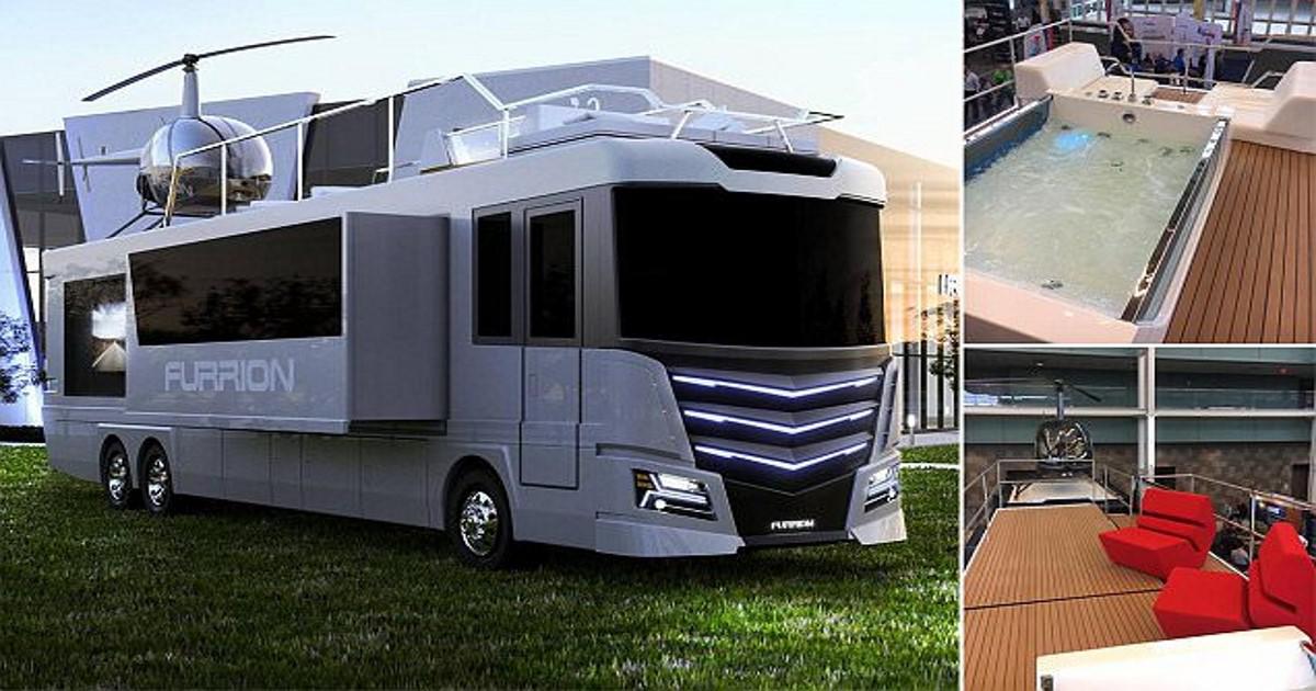 Το σούπερ τροχόσπιτο των 2.500.000€, με το ελικόπτερο στην οροφή και το πιο απίστευτο τζακούζι που έχετε δει ποτέ