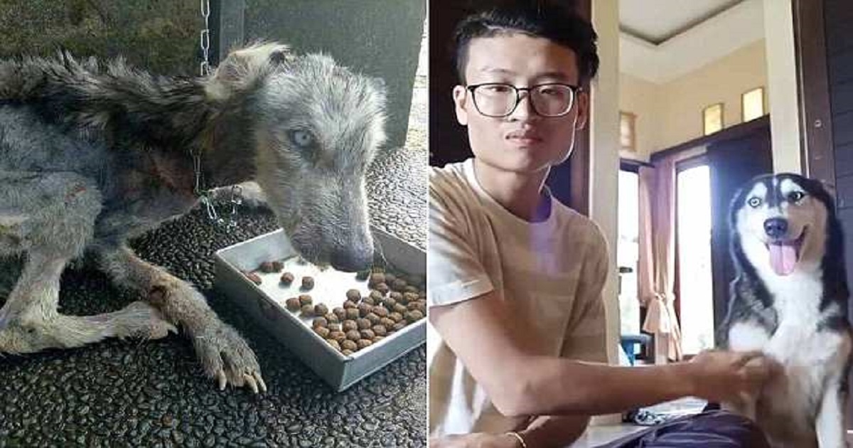 Άντρας βρήκε σκελετωμένο Χάσκι γεμάτο πληγές, του έδωσε αγάπη και το έκανε αγνώριστο