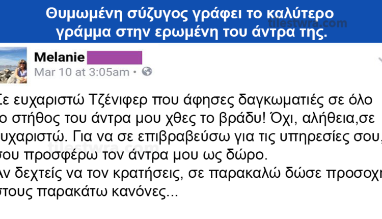 Θυμωμένη σύζυγος γράφει το καλύτερο γράμμα στην ερωμένη του άντρα της.