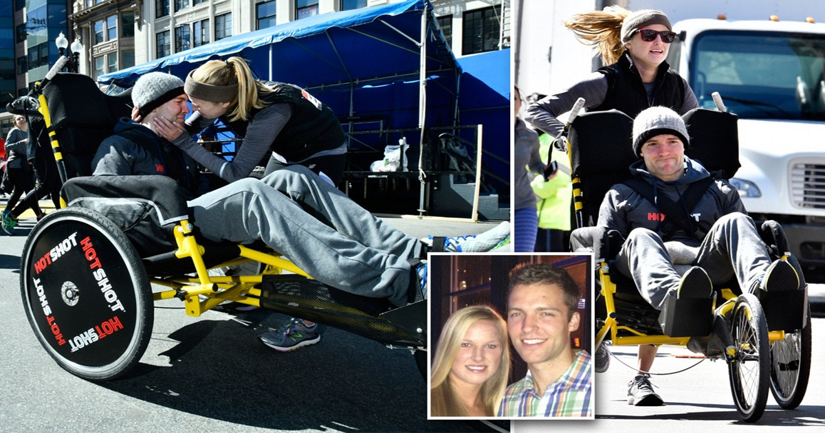 Ένας άνδρας που έμεινε παράλυτος από τους ώμους κάτω μετά από ένα ατύχημα στο μπάσκετ έχει ολοκληρώσει τον μαραθώνιο της Βοστώνης με την πολύτιμη βοήθεια της φίλης του.Ο 30χρονος Matt Wetherbee, ήταν σε αναπηρικό καροτσάκι τα τελευταία δύο χρόνια, μετά το ατύχημα που κατέστρεψε το πάνω μέρος της σπονδυλικής του στήλης, λίγες ημέρες πριν κάνει πρόταση γάμου στην επί πέντε χρόνια κοπέλα του Kaitlyn Kiely.