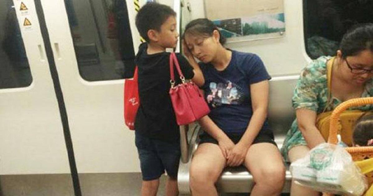 Η φωτογραφία ενός παιδιού που στηρίζει την εξαντλημένη μητέρα του μέσα στο τραίνο έχει προκαλέσει τον θαυμασμό όλου του διαδικτύου