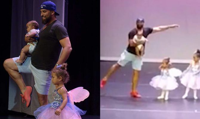 Στο ξεκαρδιστικό βίντεο φαίνεται ο Μαρκ Ντάνιελς να πηγαίνει να βοηθήσει την κόρη του που βρισκόταν πάνω στην σκηνή κατά την διάρκεια μιας χορογραφίας μπαλέτου.