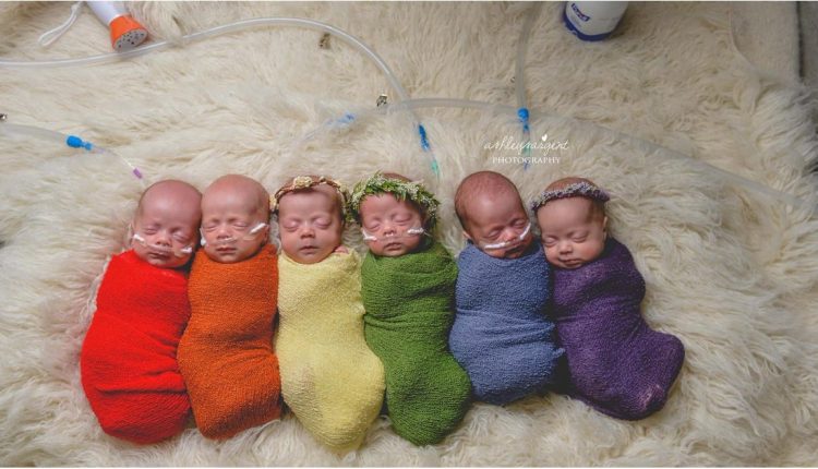 «Ναι, είναι ένα θαύμα. Γιατί οι πιθανότητες ήταν εναντίον τους… οι πιθανότητες να αποκτήσουν έξι παιδιά σε μία εγκυμοσύνη… οι πιθανότητες να τα καταφέρουν όλα τα παιδιά… οι πιθανότητες οι δύο γονείς να τα αποδεχτούν όλα ανεξάρτητα από τις εκπλήξεις… εσείς μωρά είστε ένα θαύμα. Θα ταρακουνήσετε τον κόσμο. Γιατί μετά από κάθε καταιγίδα… υπάρχει και ένα ουράνιο τόξο.»Η Ashley φωτογράφησε τα μωρά, με το καθένα να έχει ντυθεί σε ένα από τα χρώματα του ουράνιου τόξου και τα έβαλε όλα μαζί στην σειρά με την οποία γεννήθηκαν.Ο Blu, ο μεγαλύτερος, είναι στα κόκκινα, τον ακολουθεί ο Layke στα πορτοκαλί και ο Rawlings στα κίτρινα. Έπειτα είναι η Rayne στα πράσινα και ο Tag στα μπλε. Το νεαρότερο μωρό, η Rivers είναι τυλιγμένη σε μία μωβ κουβέρτα.