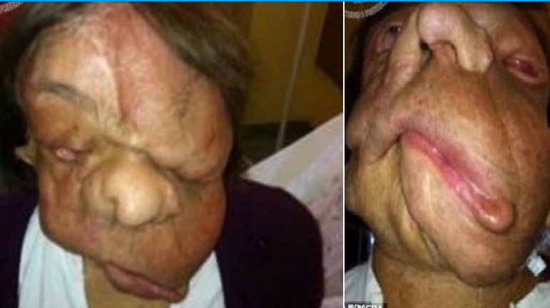 Η γυναίκα ανέπτυξε τεράστιους όγκους στο πρόσωπο εξαιτίας μιας γενετικής διαταραχής. Αυτή είναι η Joanna πριν την μεταμόσχευση προσώπου. Είναι γνωστή μόνο με το μικρό της όνομα για την προστασία των ιδιωτικών της στοιχείων.