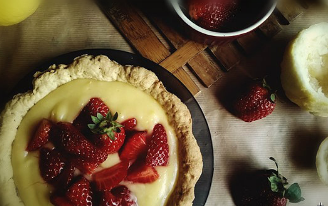 Τάρτα ανοιξιάτικη με κρέμα λεμονιού και φράουλες