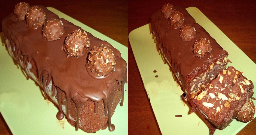 - Κόβω στη μέση μερικά σοκολατάκια Ferrero Rocher και στολίζω την επιφάνεια!