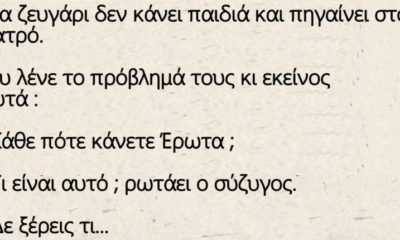 1 Νοεμβρίου 2019Ένα ζευγάρι δεν κάνει παιδιά και πηγαίνει στο γιατρό. Του λένε το πρόβλημά τους κι εκείνος...