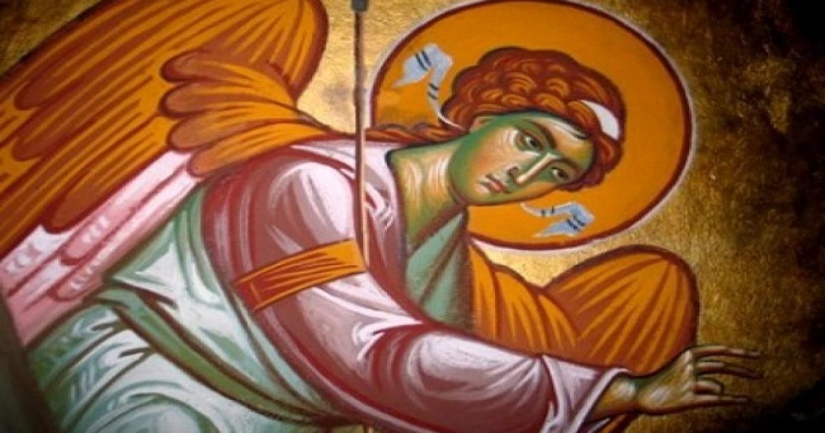 Γυρίζω, και τι να δω! Μια τεράστια φτερούγα, που είχε περάσει ο αρχάγγελος στον ώμο μου, με οδηγούσε να προχωρήσω για τη μεγάλη είσοδο..