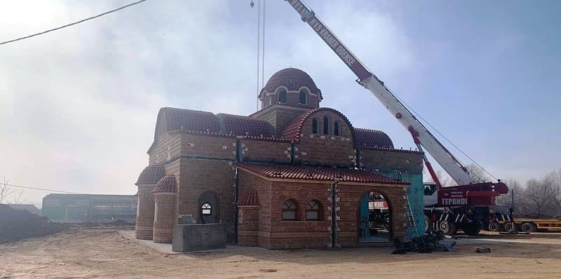 Τα συνεργεία δουλεύουν πυρετωδώς «συνθέτοντας» τα τμήματα της εκκλησίας που έρχονται προκατασκευασμένα από την Θεσσαλονίκη.
