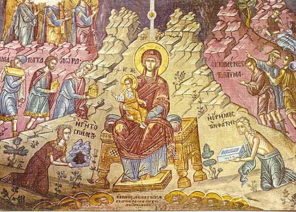 Παναγία: Η προστάτιδα των μητέρων. Η Ελεούσα, για τις λεχούσες ώστε να σταθούν και πάλι όρθιες. Η Γαλακτοτροφούσα, για να έχουν οι μητέρες γάλα. Η Βρεφοκρατούσα, για να κρατήσουν όλες οι γυναίκες μωρά στα χέρια τους.