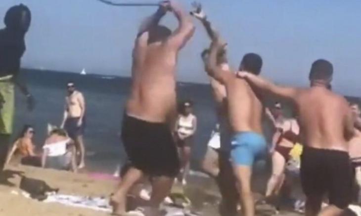 Ο καυγάς άρχισε μεταξύ των δύο παρεών, οι οποίες αποφάσισαν να λύσουν τις διαφορές τους με γροθιές και κλωτσιές, προκαλώντας πανικό στην παραλία με τους τουρίστες να τρέχουν για να αποφύγουν την συμπλοκή.