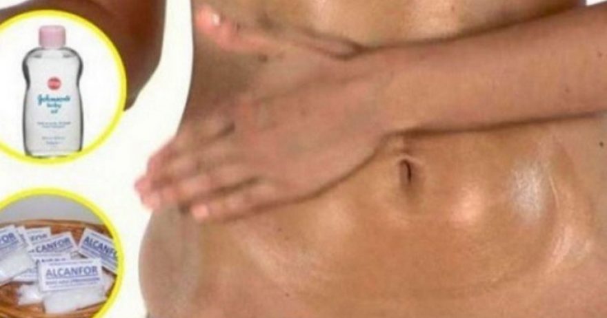 Ανακατεύει baby oil με ένα άλλο υλικό και η κοιλιά γίνεται επίπεδη