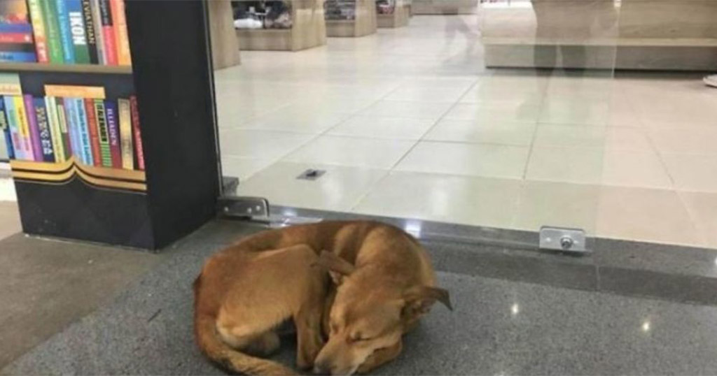 Η είσοδος του βιβλιοπωλείου, ήταν το σπίτι του σκύλου για αρκετό διάστημα.