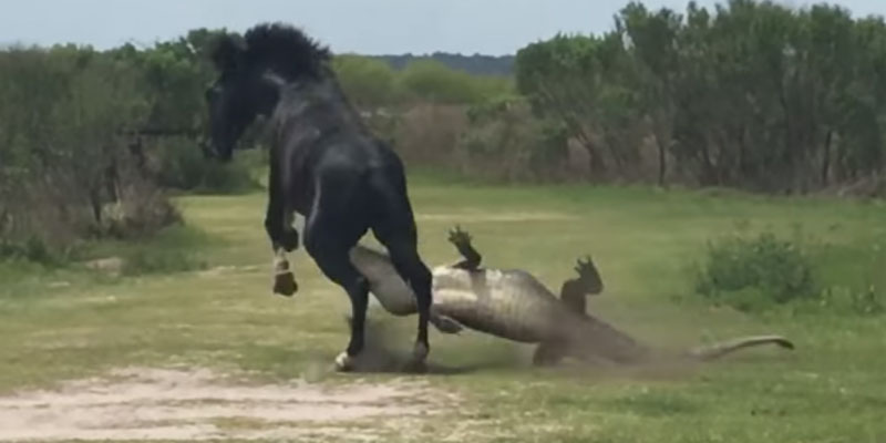 Άλογο «πλακώνει στο ξύλο» έναν τεράστιο αλιγάτορα και η στιγμή καταγράφηκε σε κάμερα