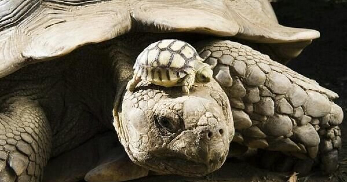 Η μαμά χελώνα ετών 140 έχει το γιο της, μόλις 5 ημερών, κορώνα στο κεφάλι της. Μια όμορφη εικόνα από τον κόσμο της φύσης στο Twitter από το Earth Pics