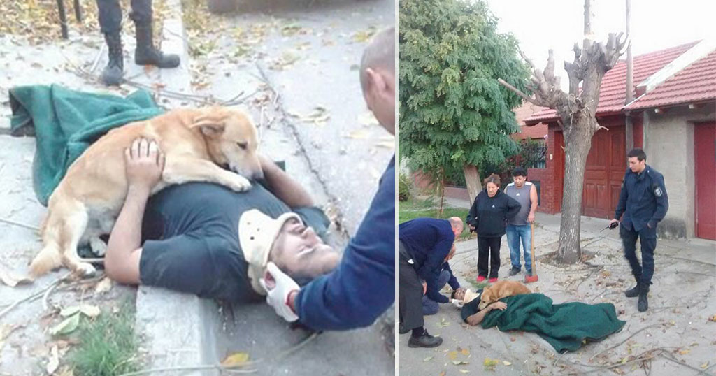 Σκύλος δεν σταματά να αγκαλιάζει τον ιδιοκτήτη του που τραυματίστηκε από πτώση.