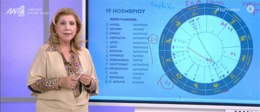 ‘Όπως σημείωε η αστρολόγος της εκπομπής «η όψη που εξακολουθεί να γίνεται από Άρη και Ουρανό, θα γίνει ξανά τον Μάρτιο και έτσι πολλά ζώδια μπορούν να προετοιμαστούν μέχρι τότε». Αμέσως μετά, η Λίτσα Πατέρα ξεκίνησε τις αναλυτικές προβλέψεις για κάθε ζώδιο.